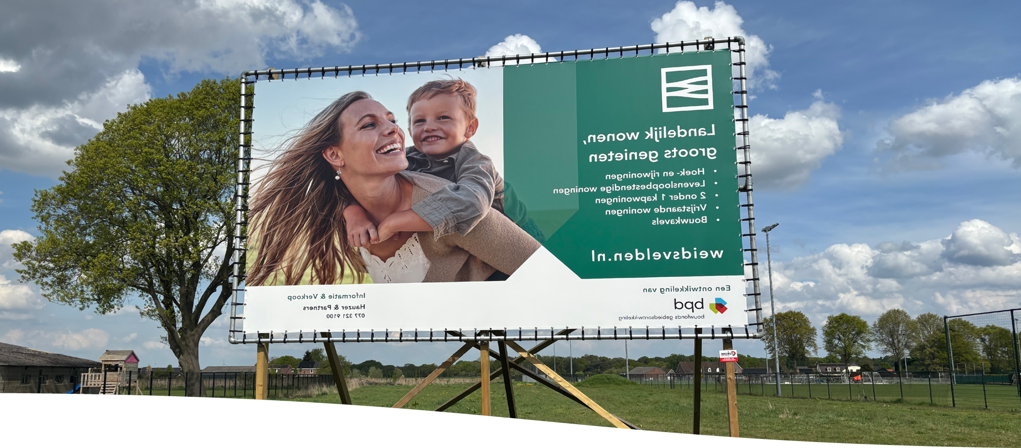 Heb jij het bouwbord van Weidsvelden al gespot? Deze is namelijk vanaf nu te zien op de projectlocatie van Weidsvelden! Aan de rand van Velden, waar nu nog weilanden het landschap bepalen, komen in totaal 35 woningen variërend van hoek- en rijwoningen, 2 onder 1 kapwoningen, vrijstaande woningen en levensloopbestendige woningen. Daarnaast komen er 4 vrije kavels.